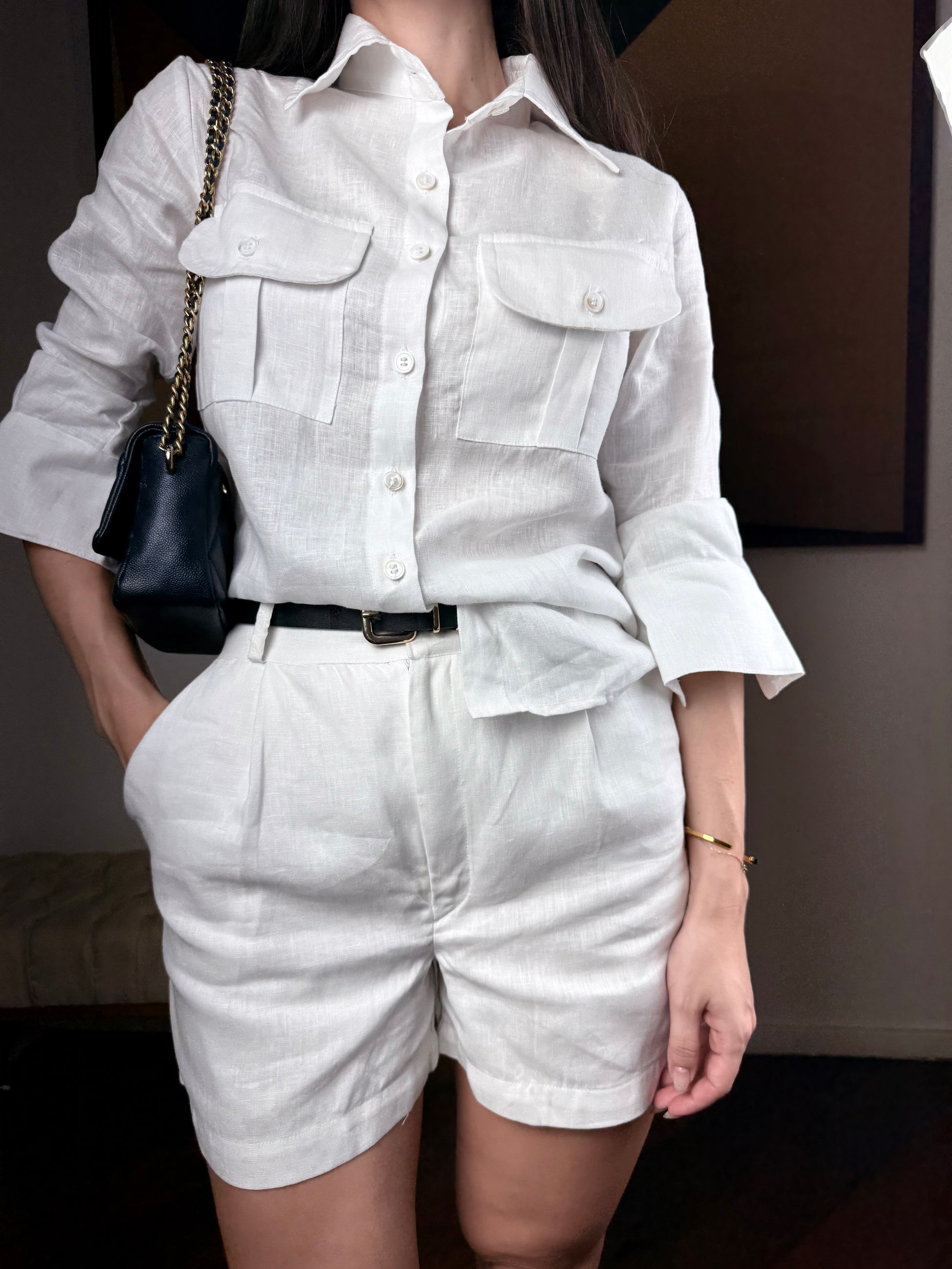 O linho é um tecido nobre, natural, clássico e confortável, pode ser usado tanto para a moda casual quanto social, essa camisa é feita na cambraia de linho e com botões madrepérola, e bolsos frontais, a cambraia é um tecido de linho mais fino, permite a respirabilidade da pele, ideal para o verão, quando você quer se vestir elegante mesmo no calor.